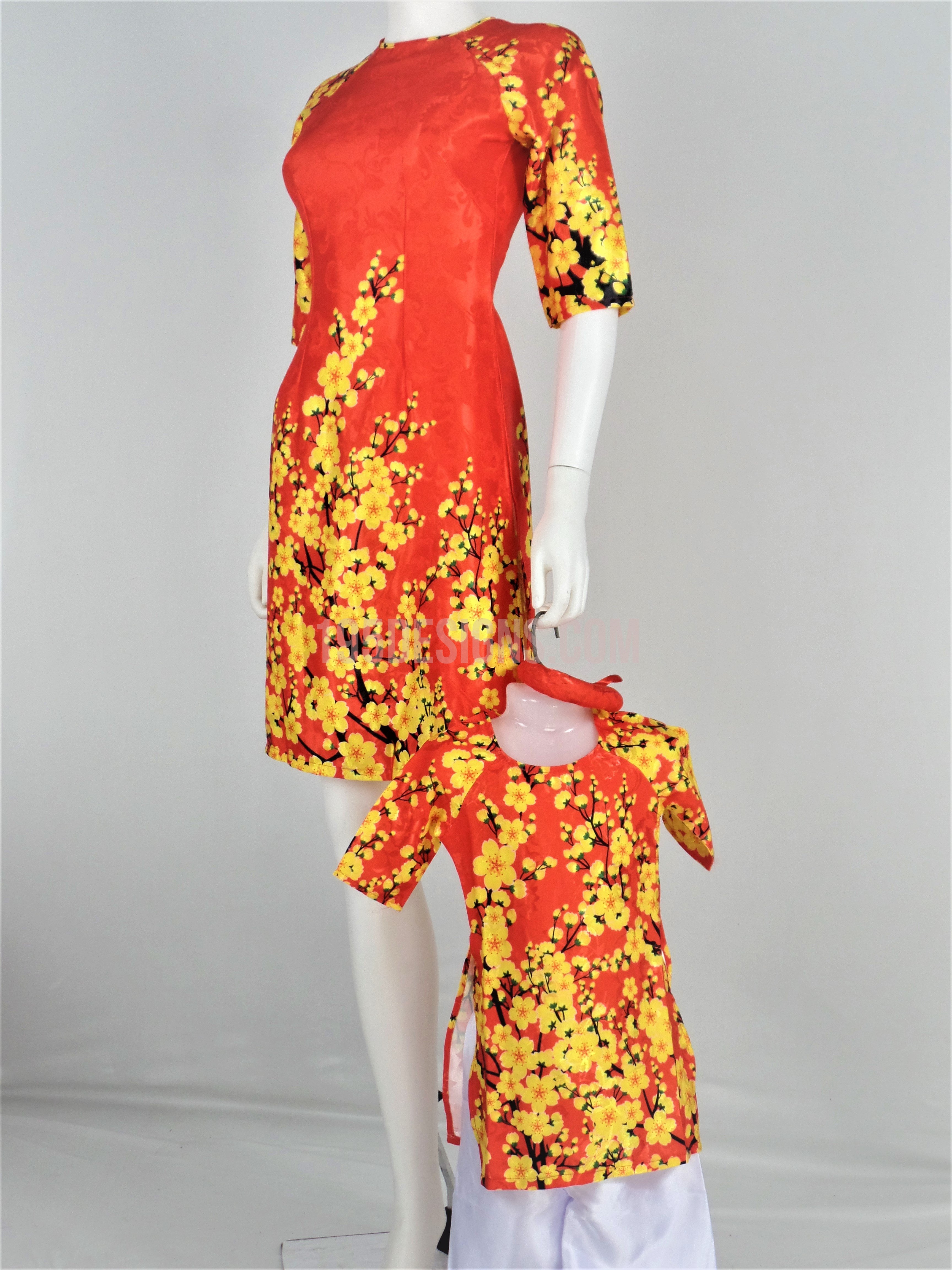 Bé Gái Đỏ Bộ Có Quần | Red Ao Dai Baby Kid Set - Lunar New Year