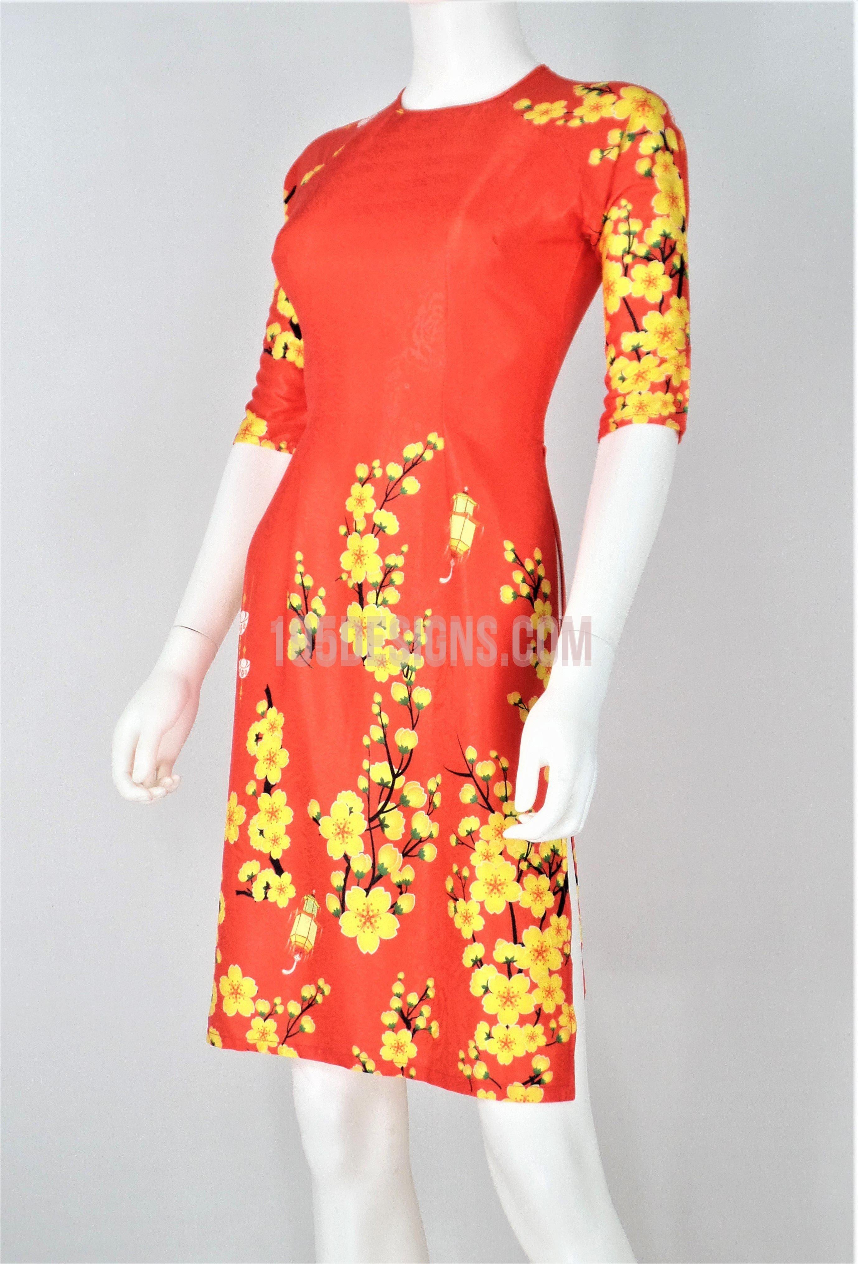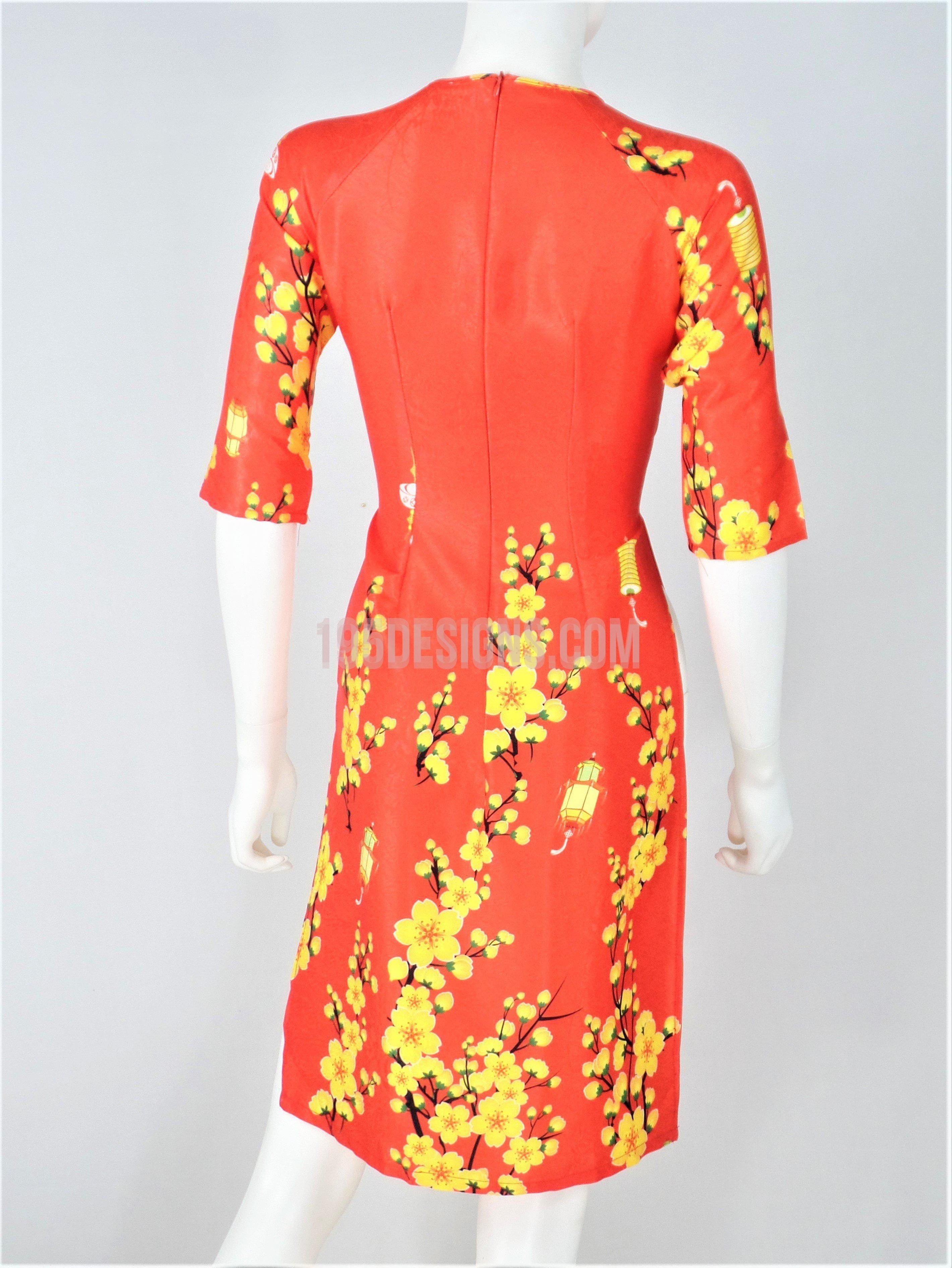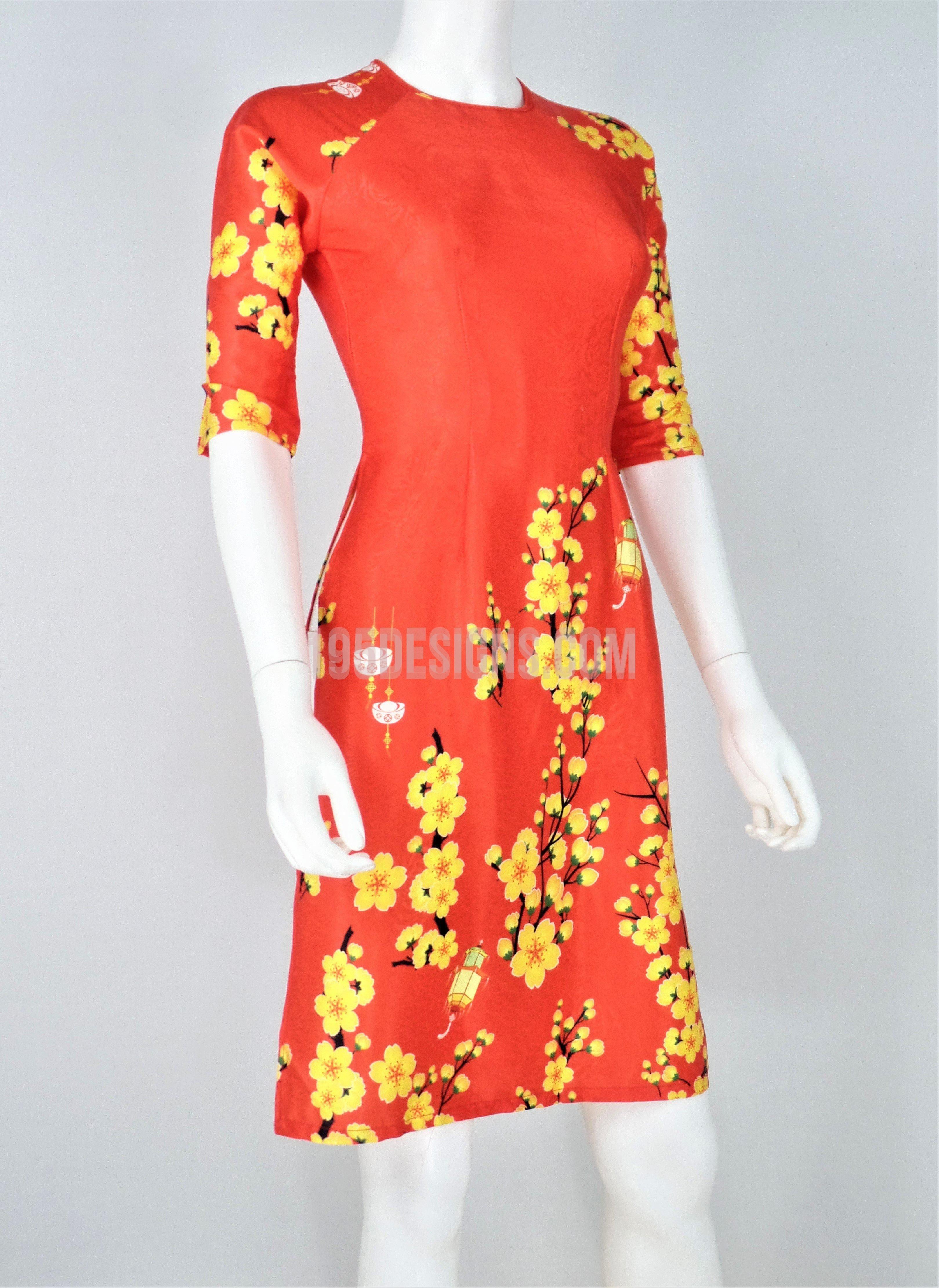 SKU: 420442Red Ao Dai Modern Lunar New Year | Áo Dài Đỏ Cách Tân Gấm Giản Tết