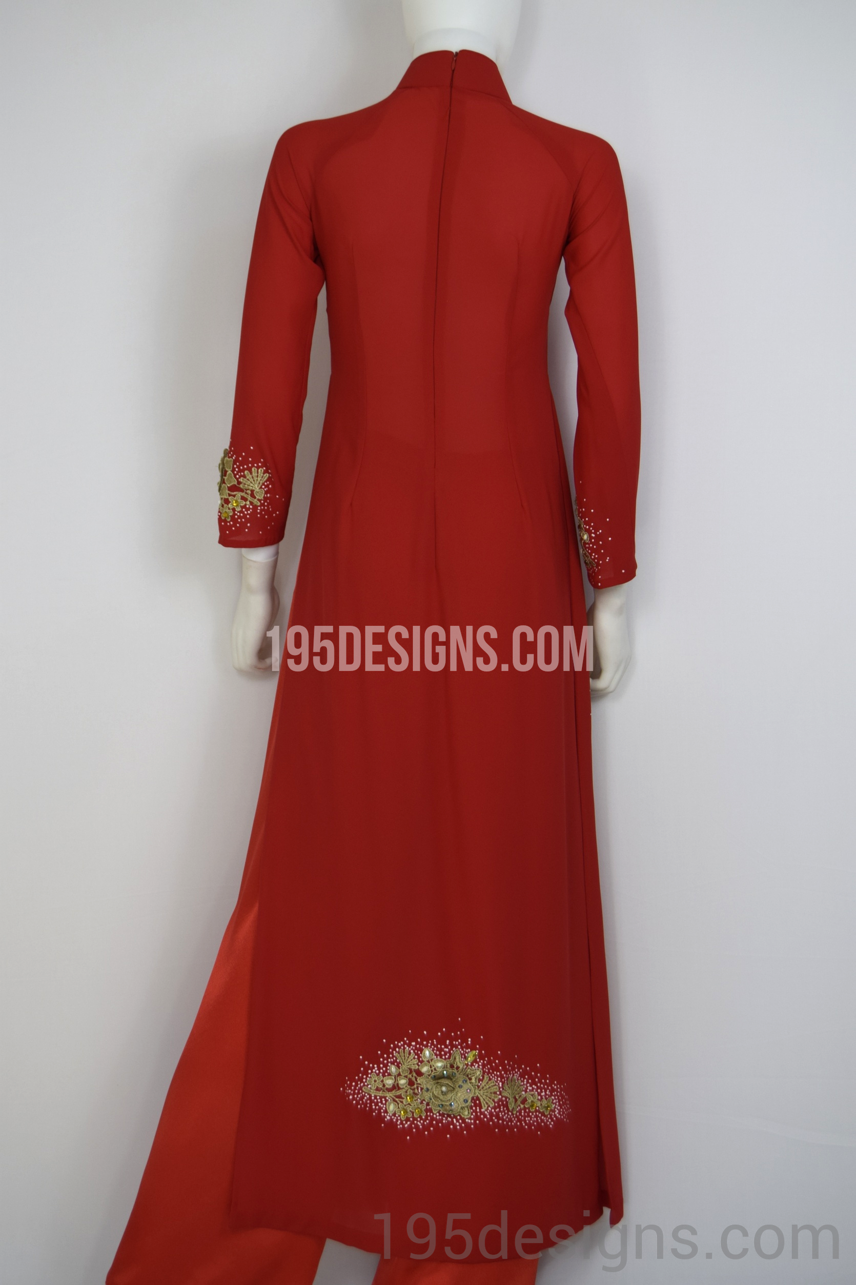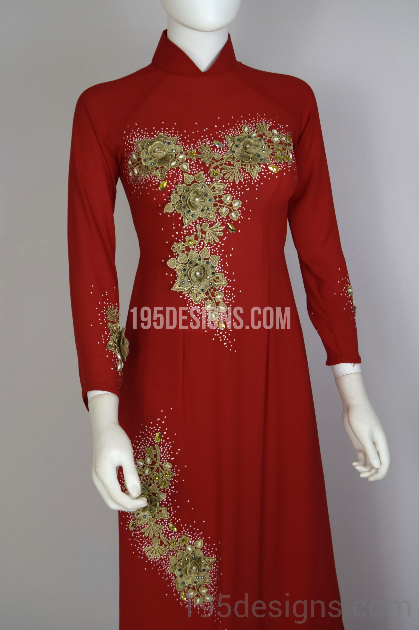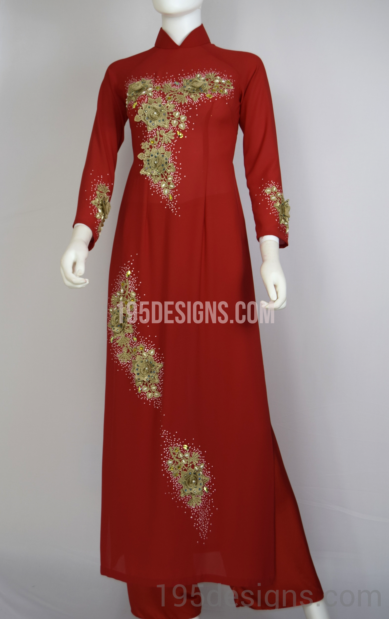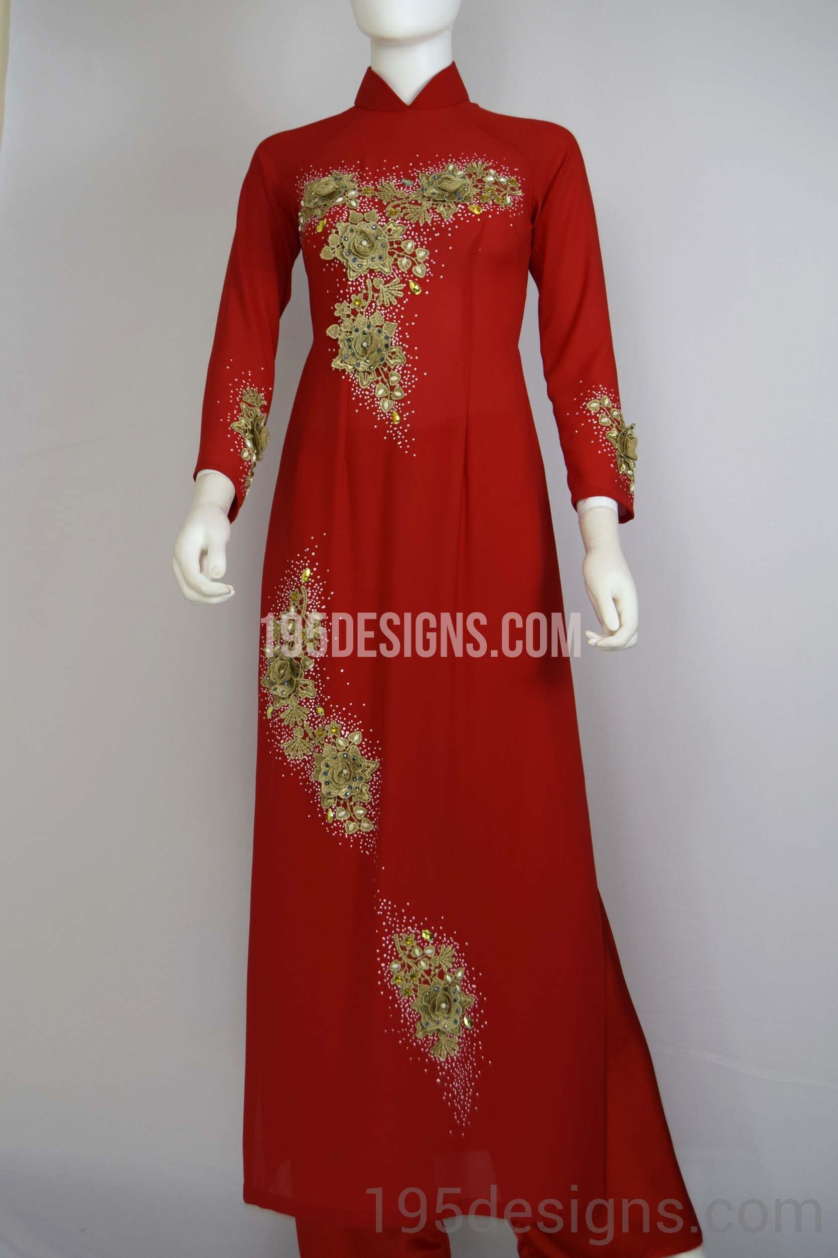 Red Ao Dai Red Crystal Gold Flower Wedding- Ao Dai Kết Đá Pha Lê