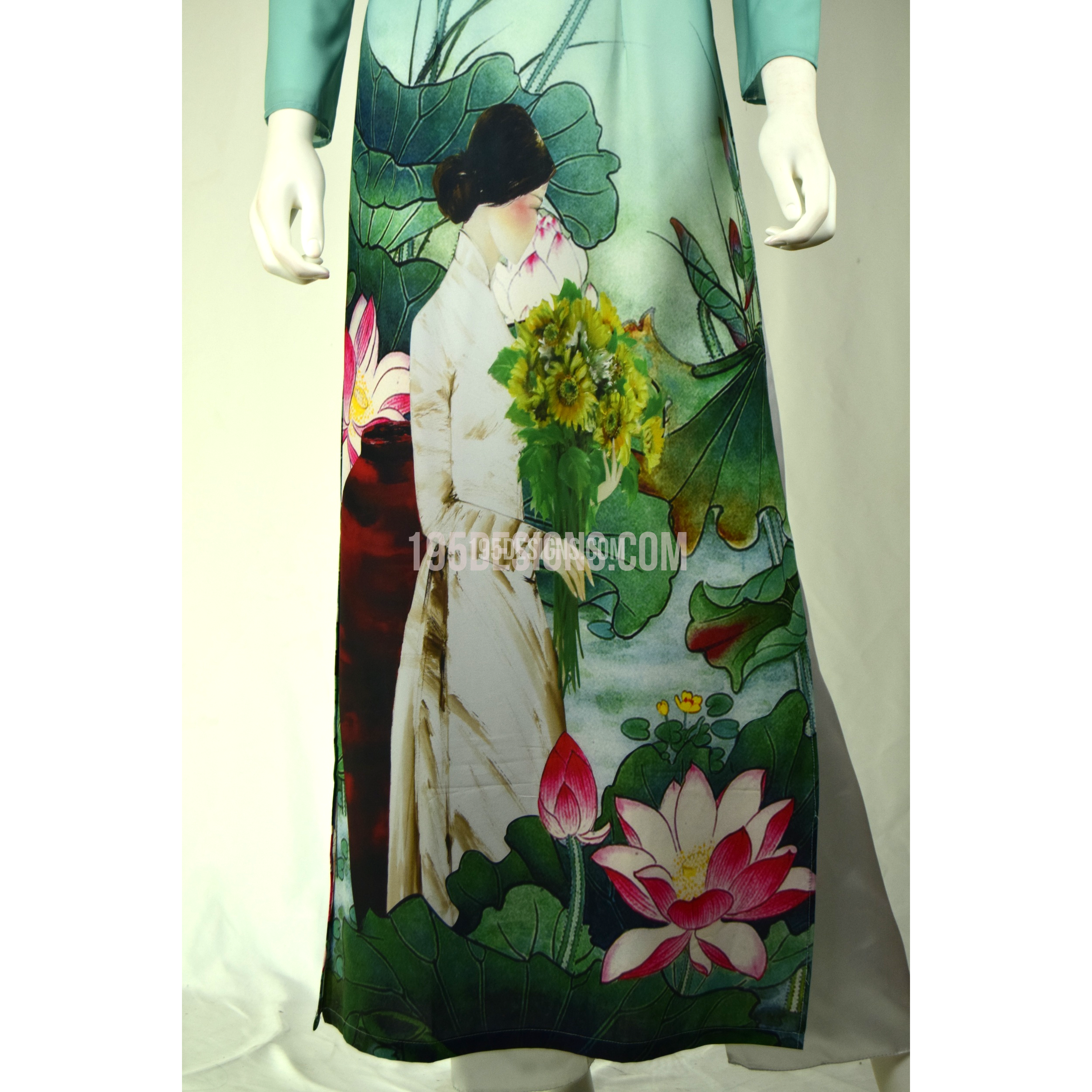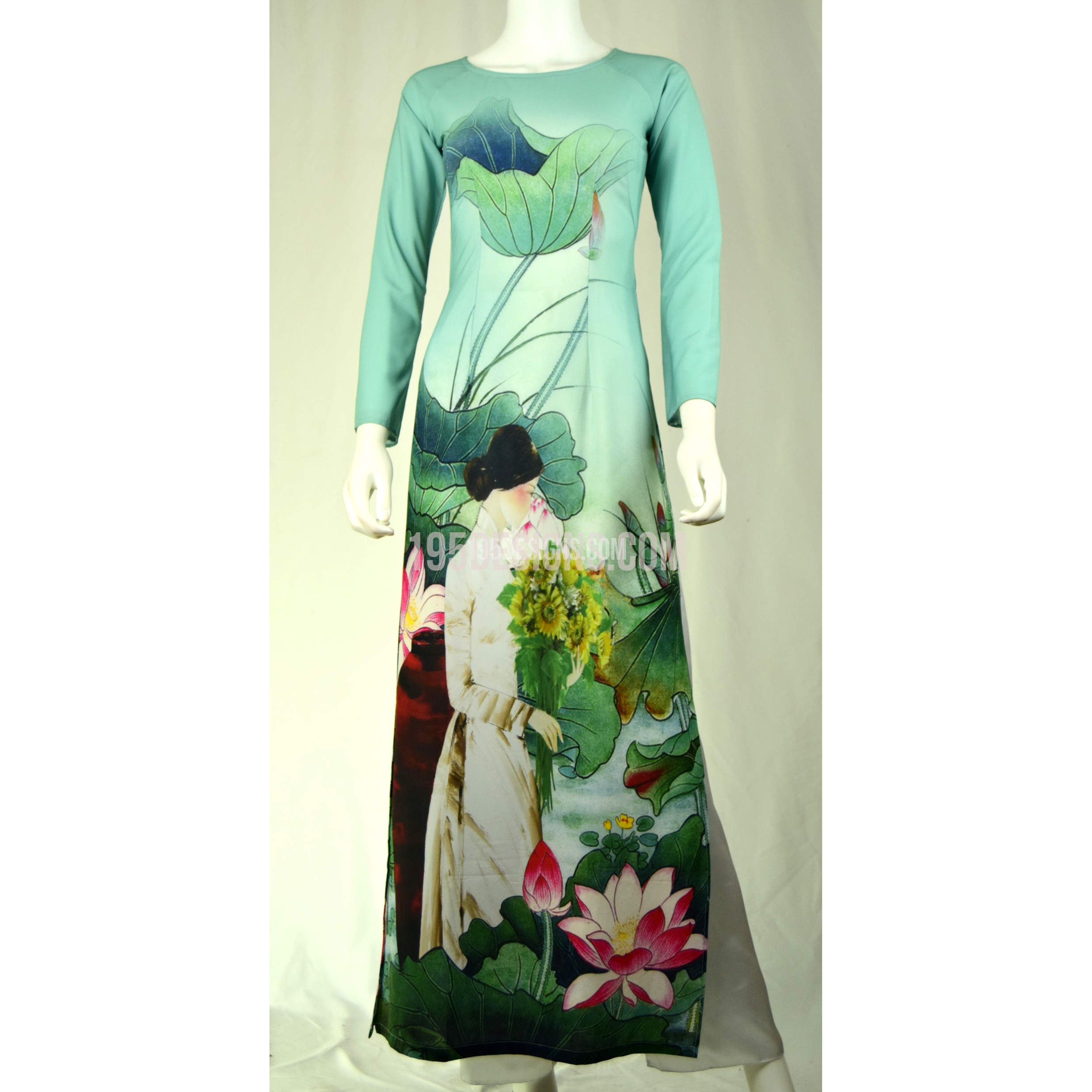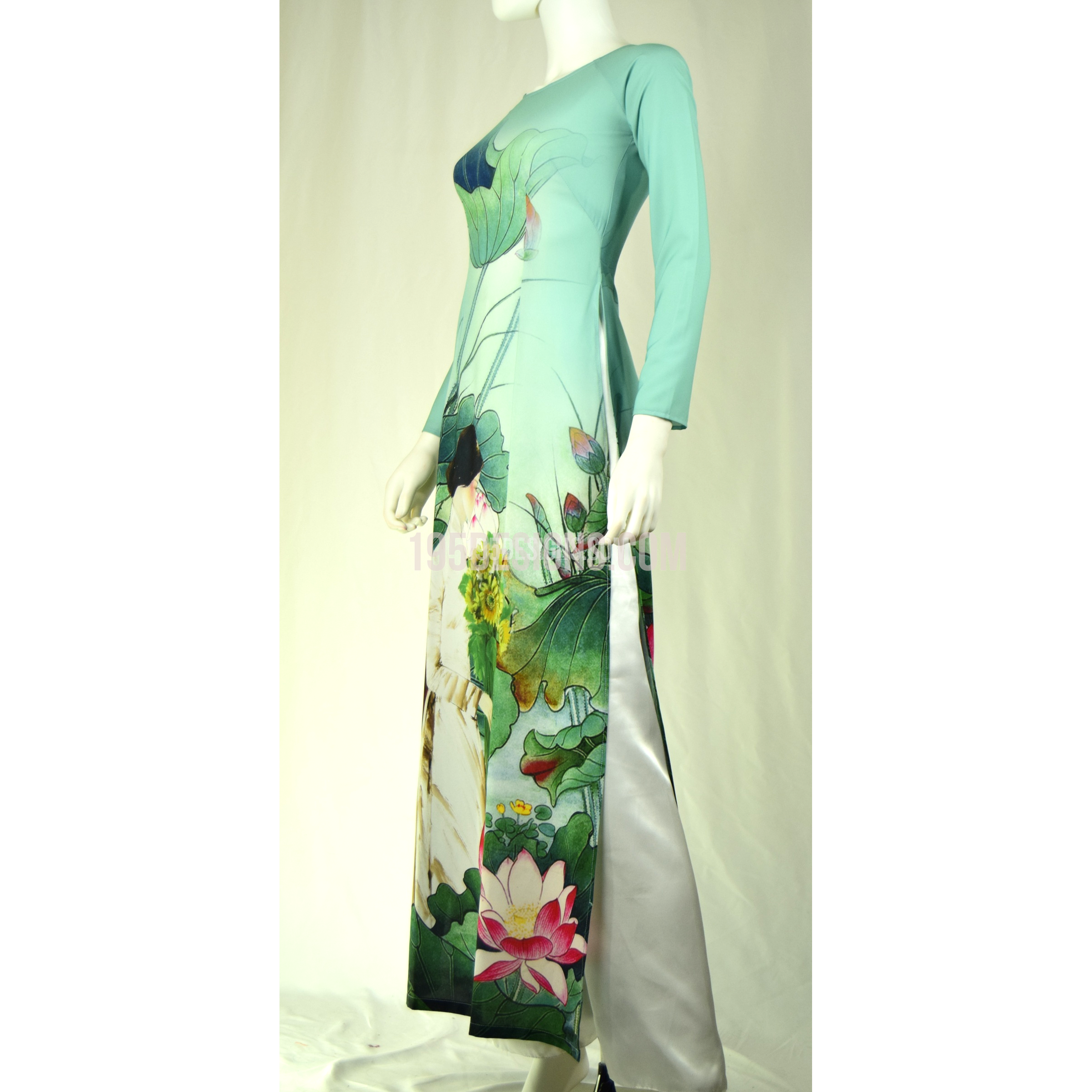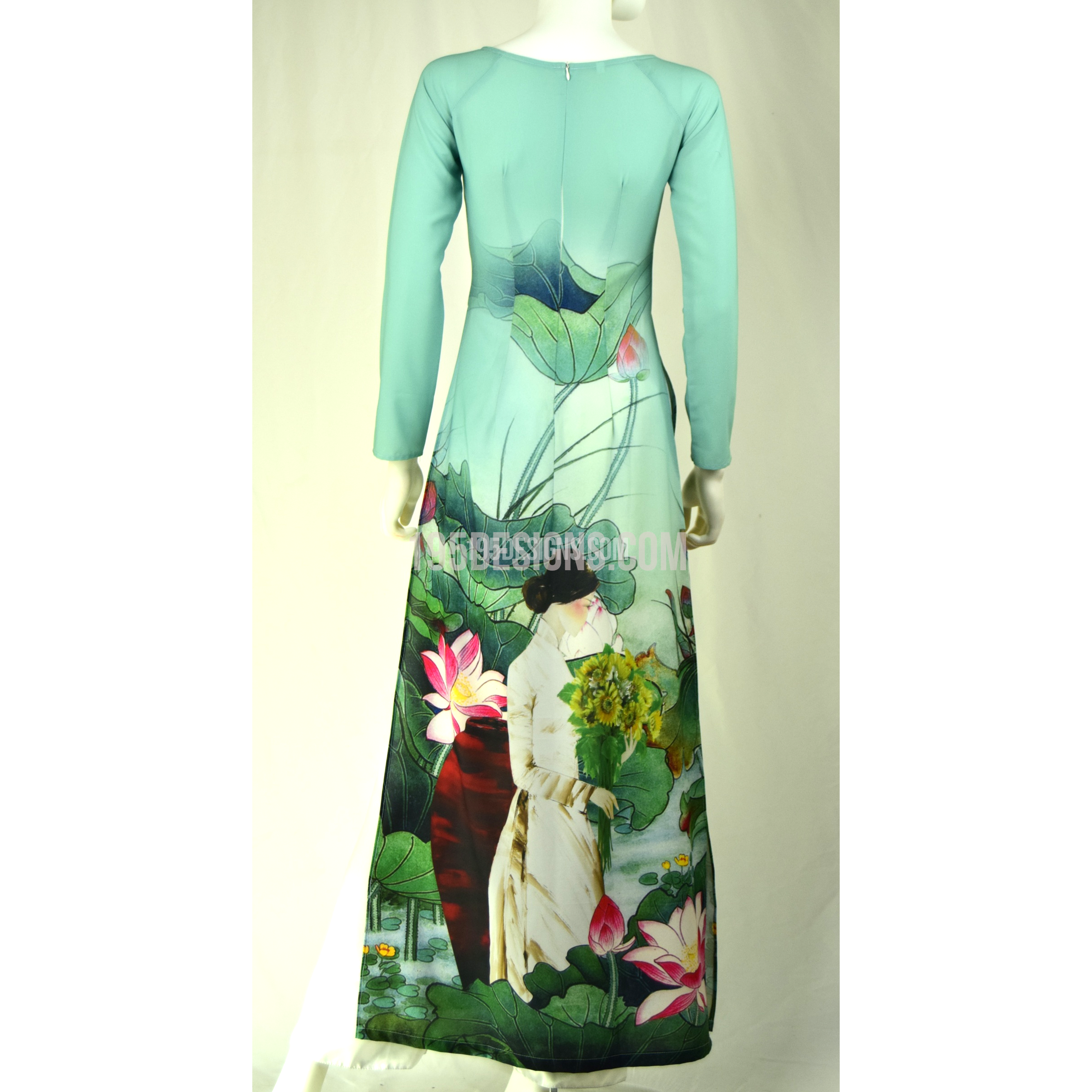 Xanh ÁO DÀI In Hoa Sen 3D | Sky Blue AO DAI print Lotus flower Set