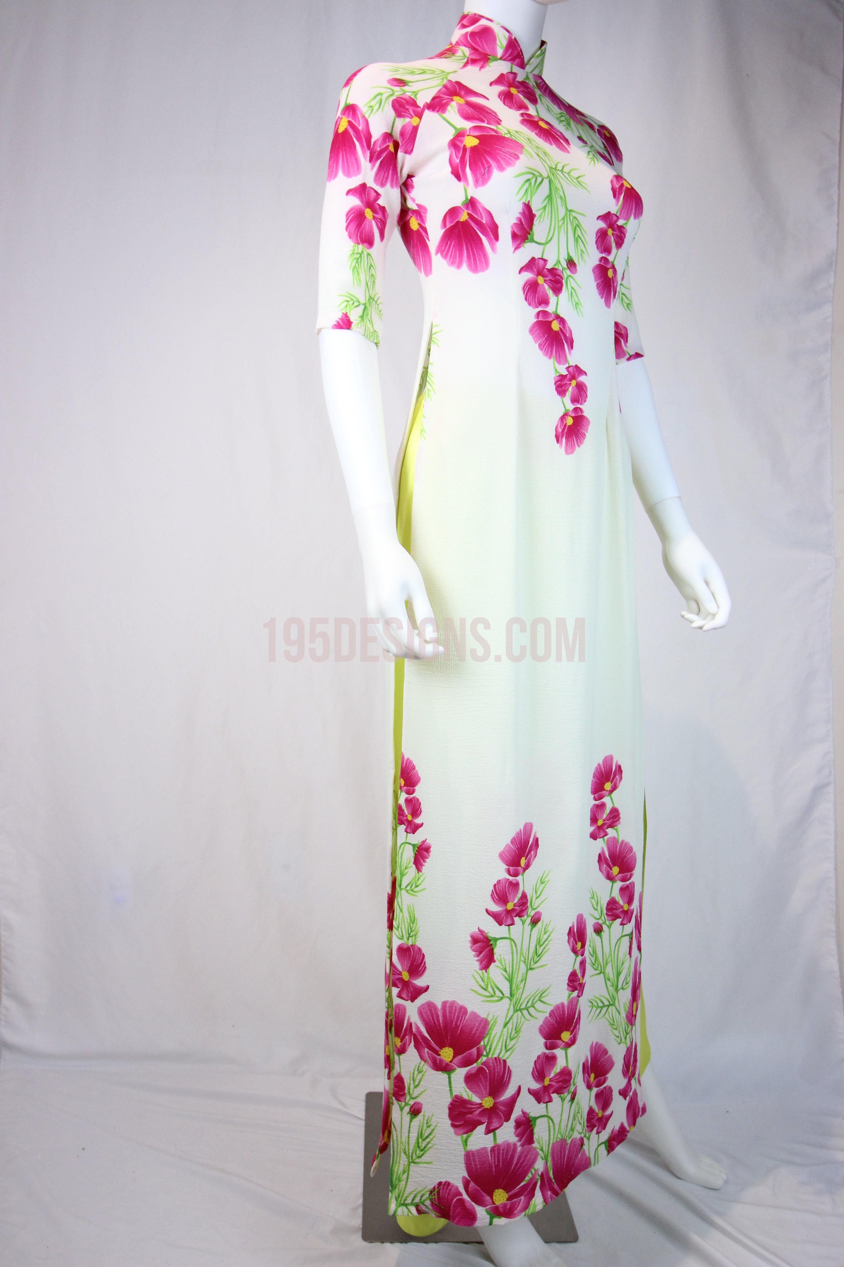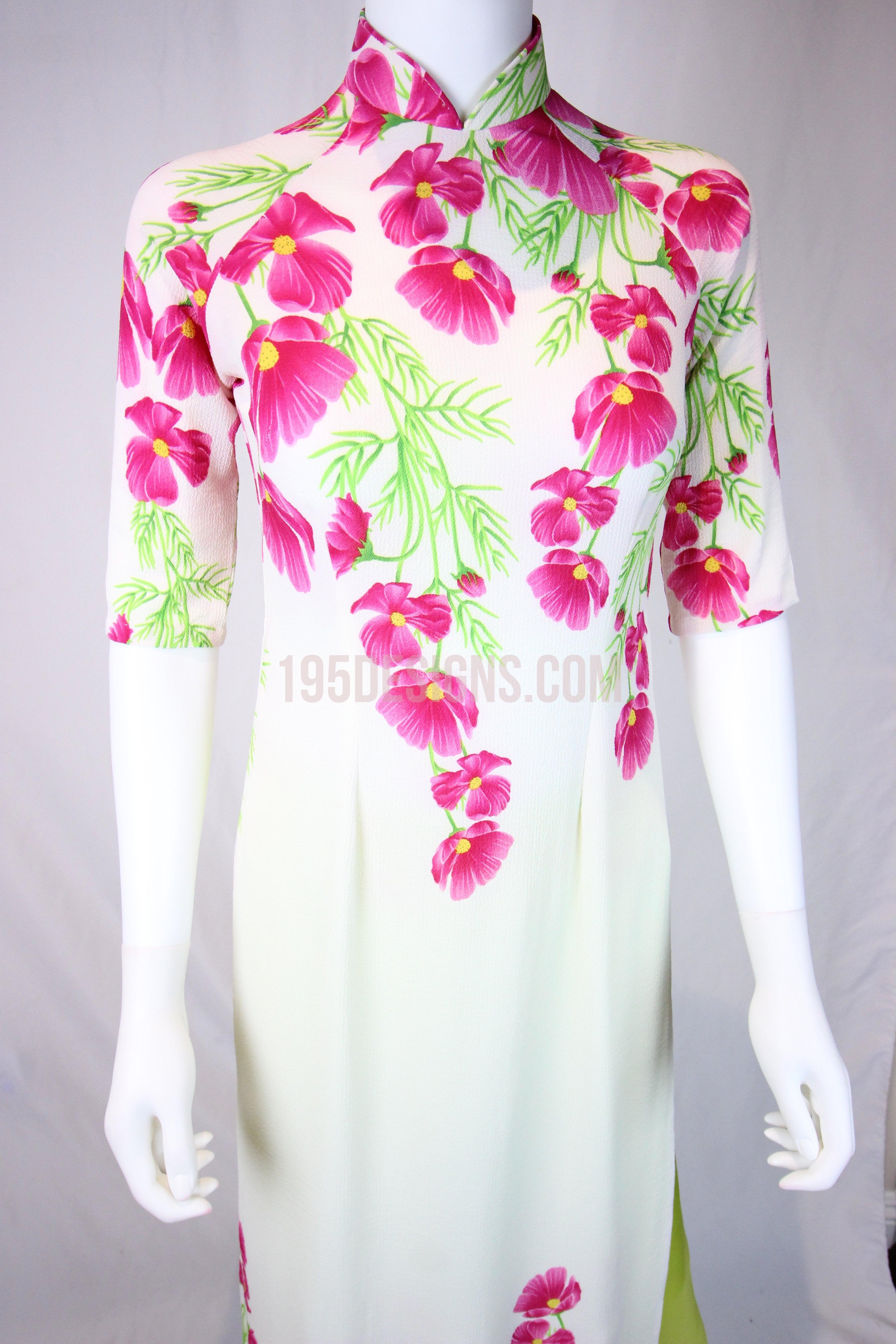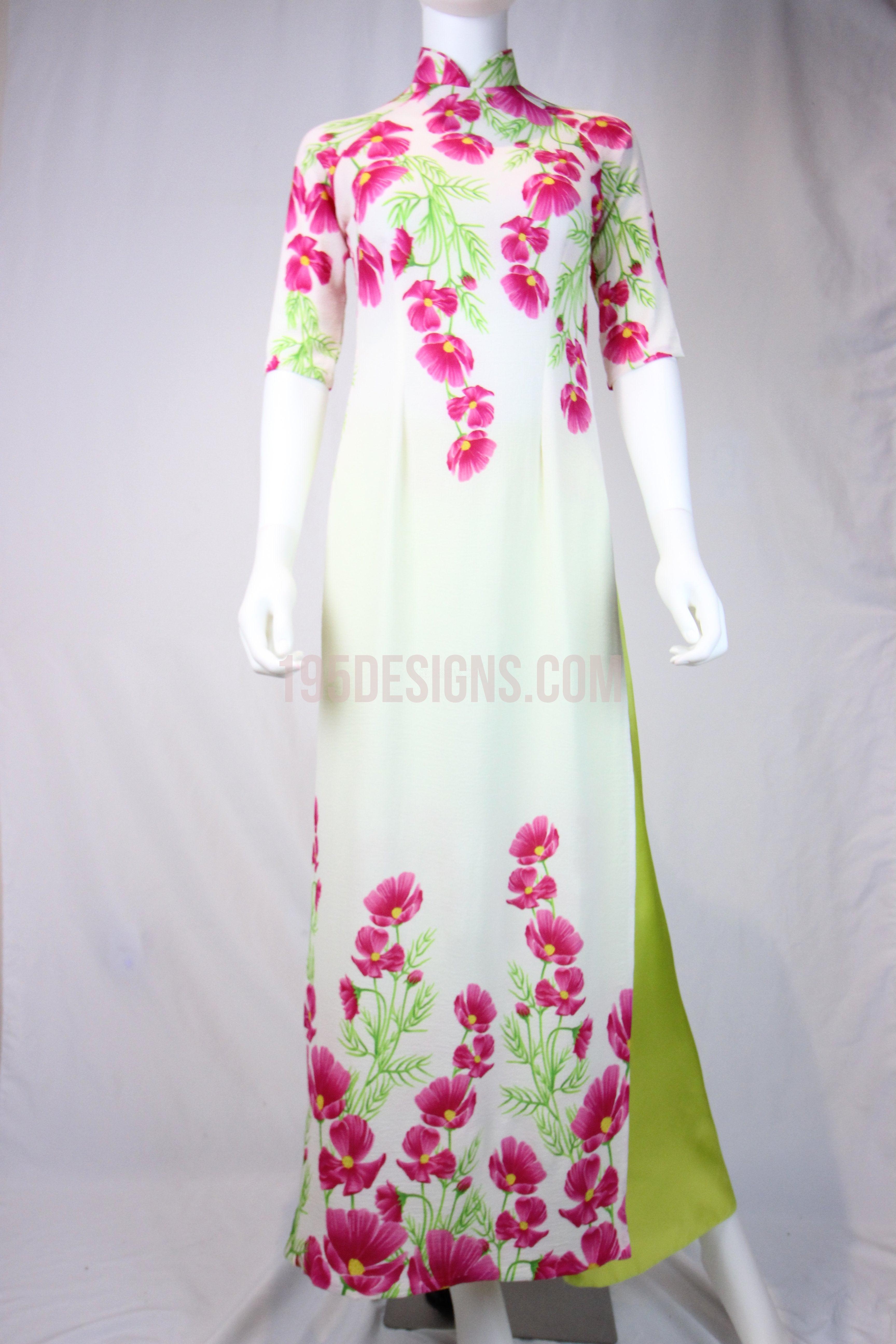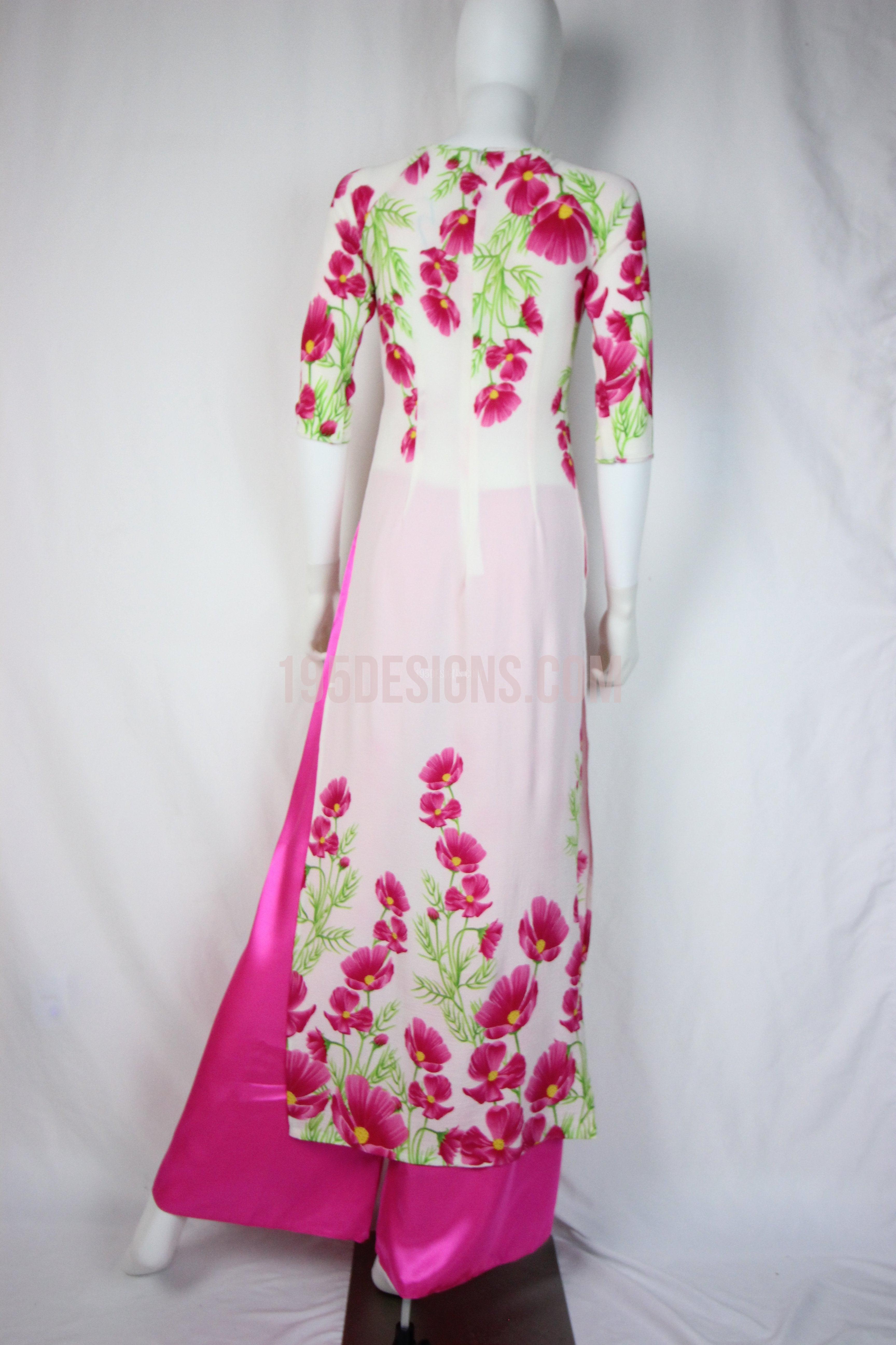 White Ao Dai Red Cherry Blossom New Year Set | Hoa Đào Tet