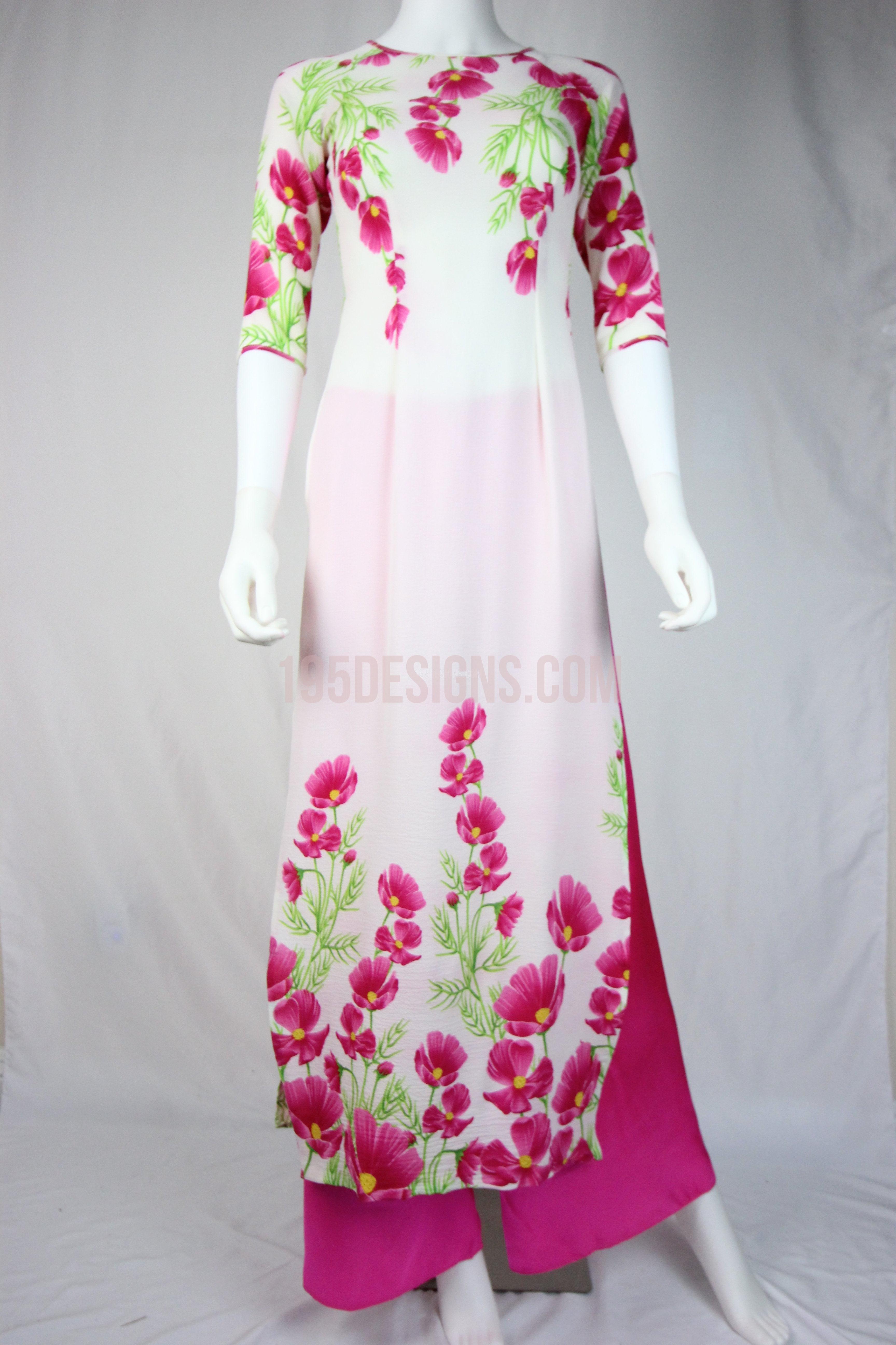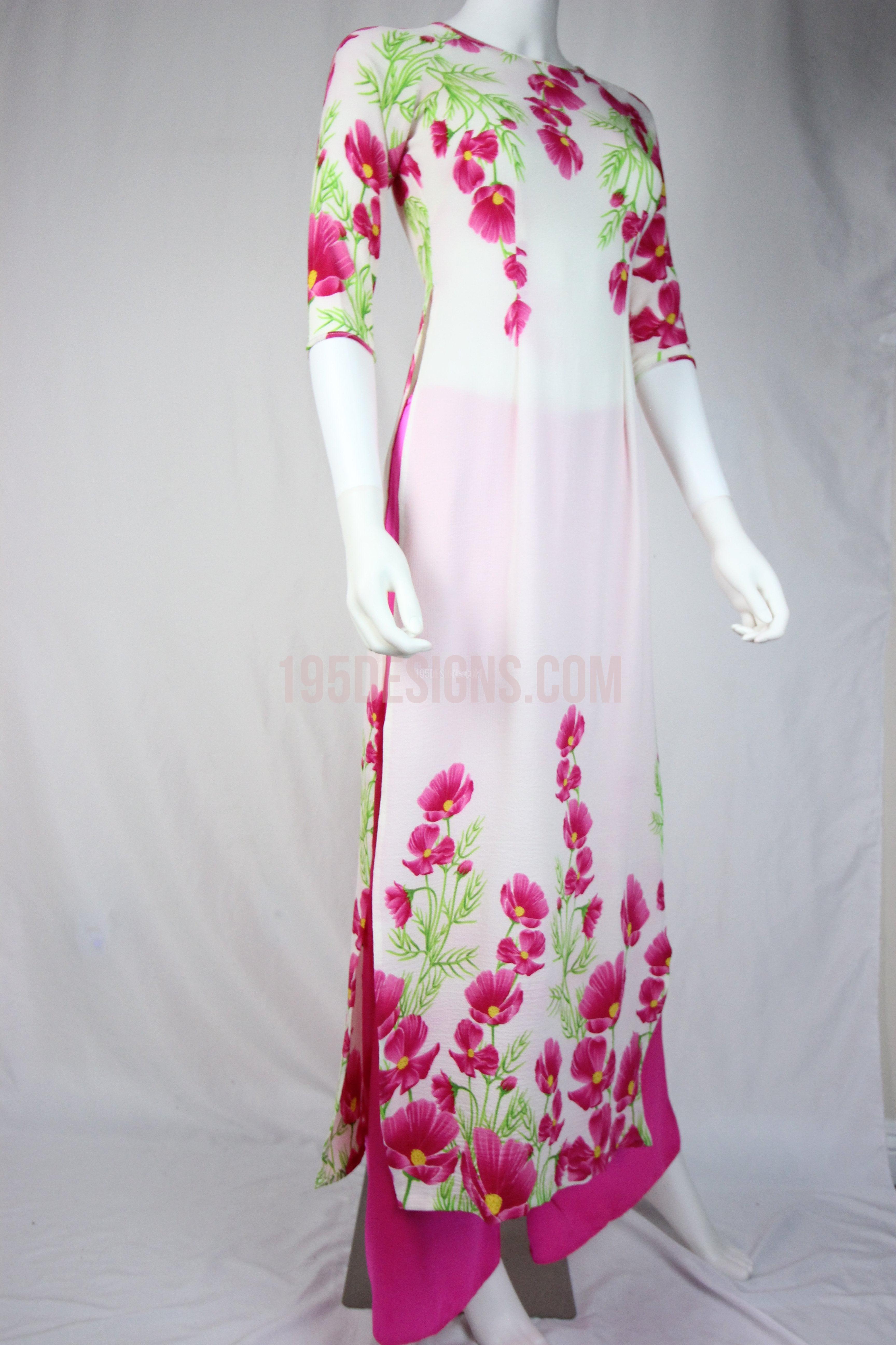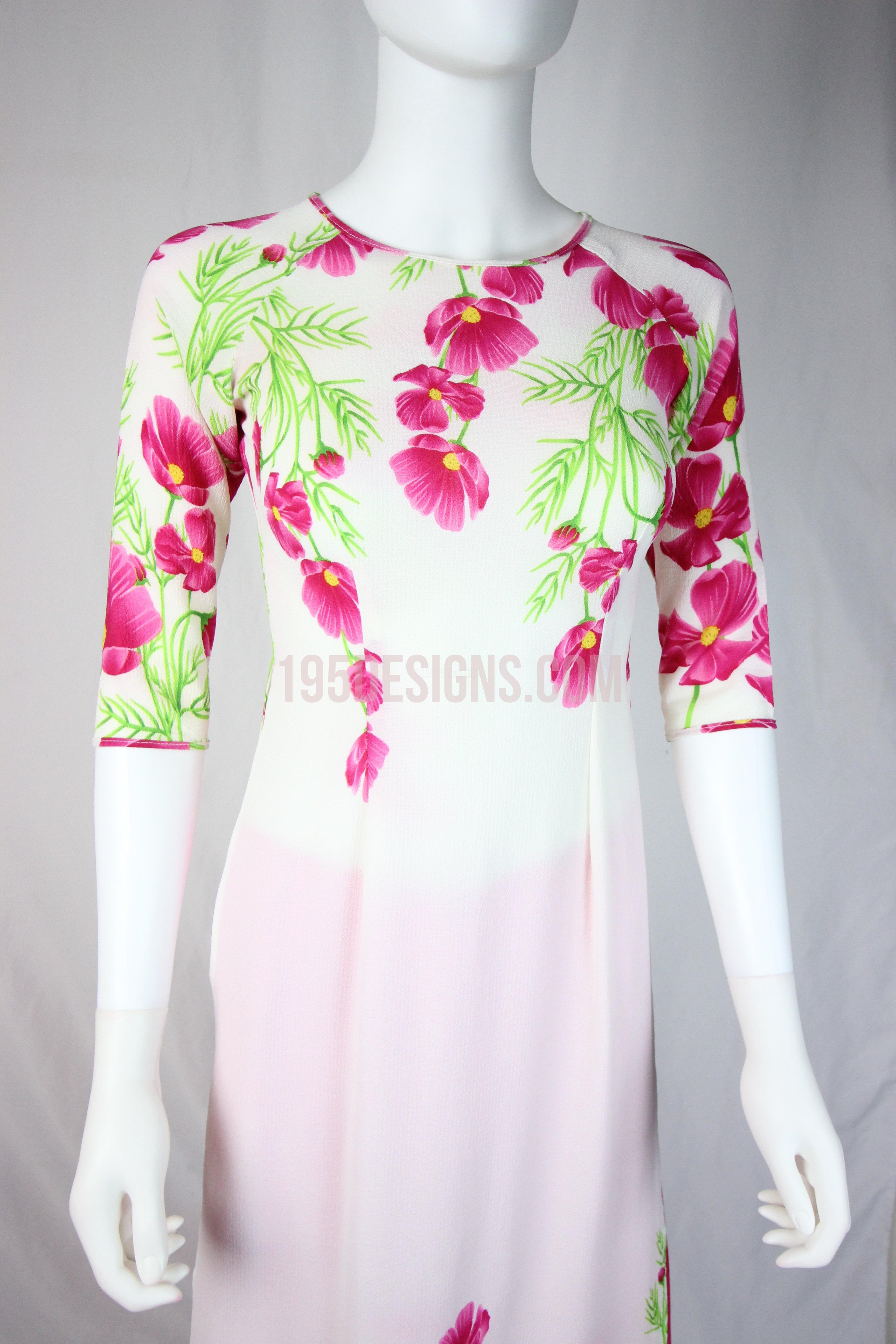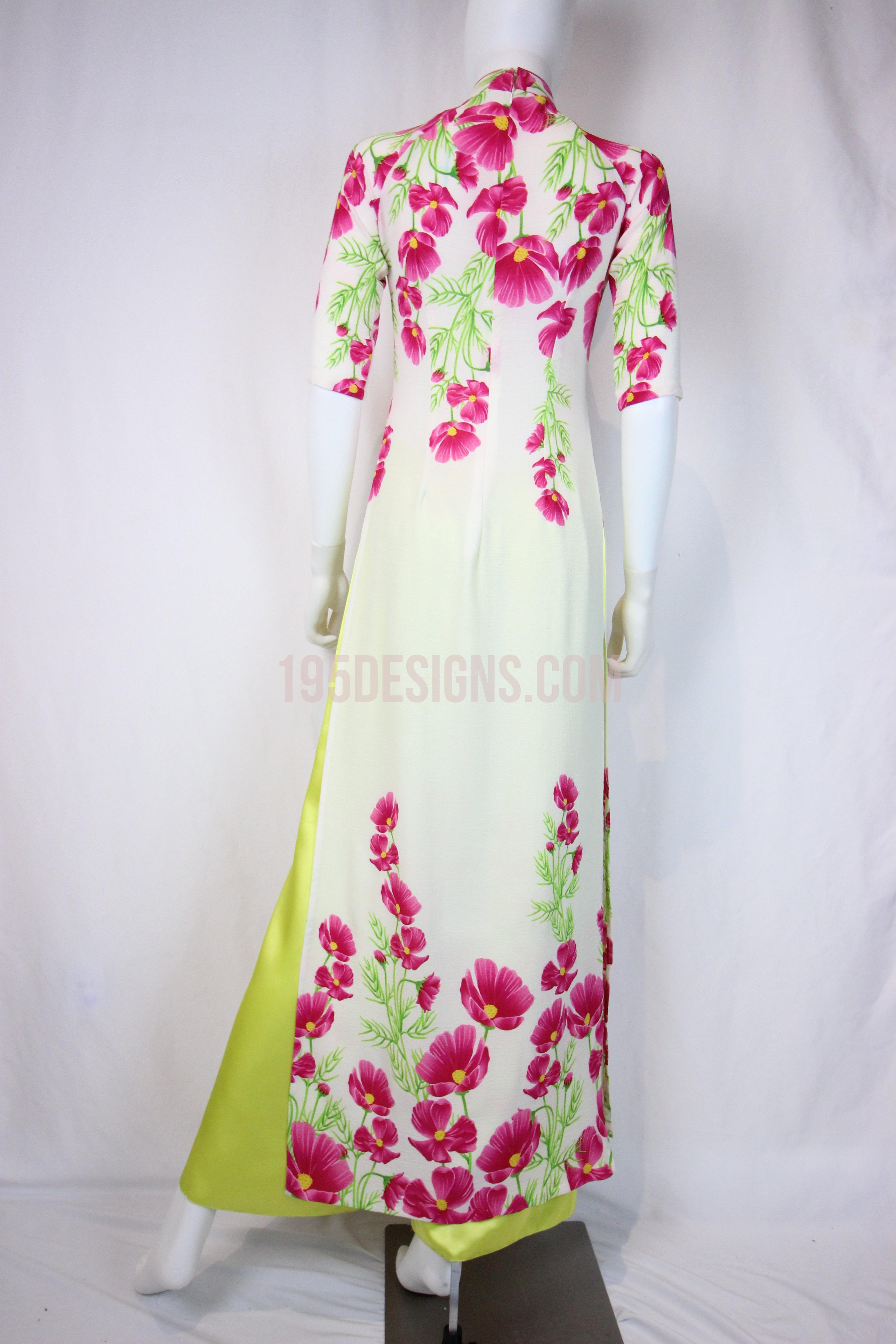 White Ao Dai Red Cherry Blossom New Year Set | Hoa Đào Tet