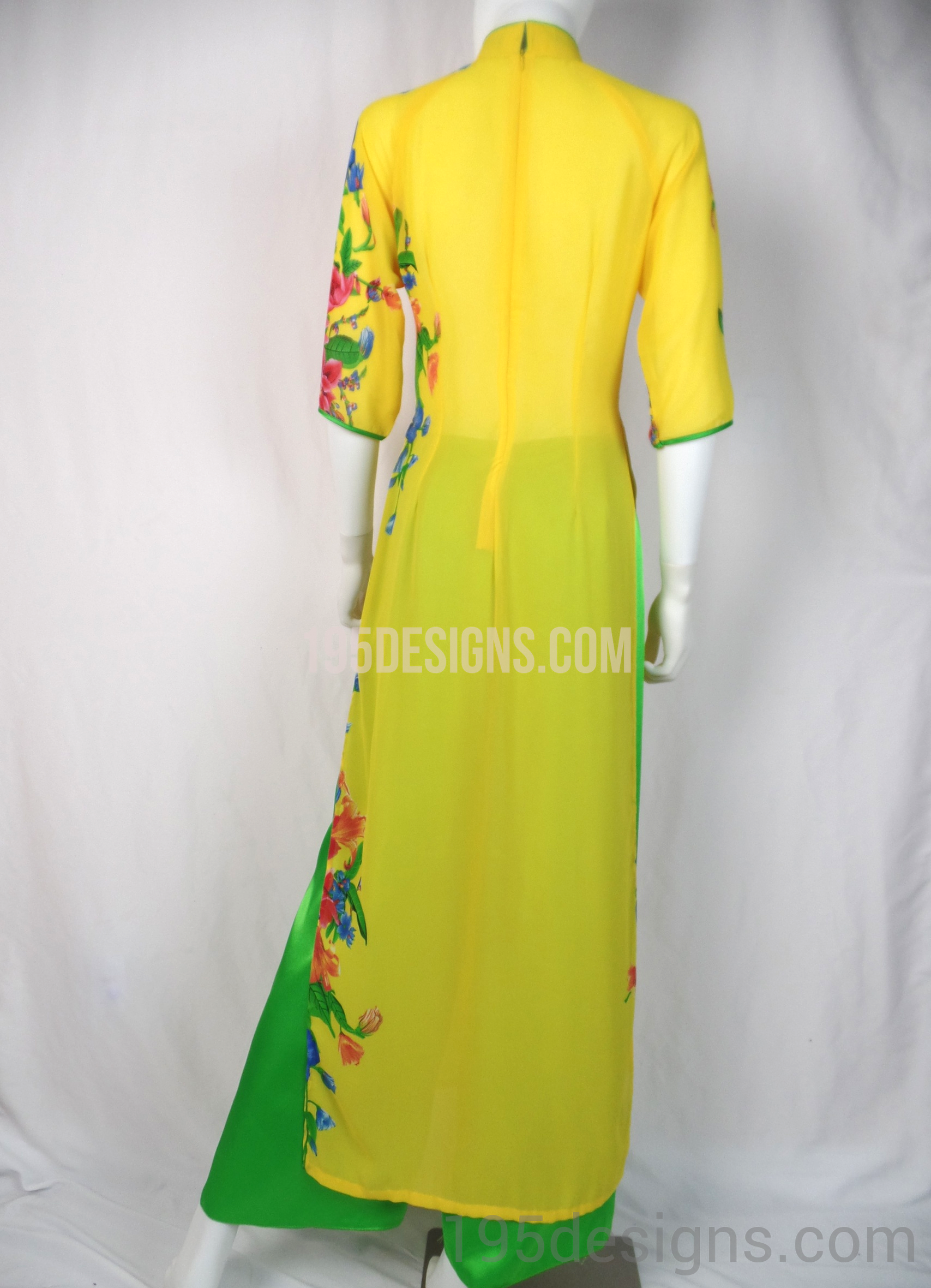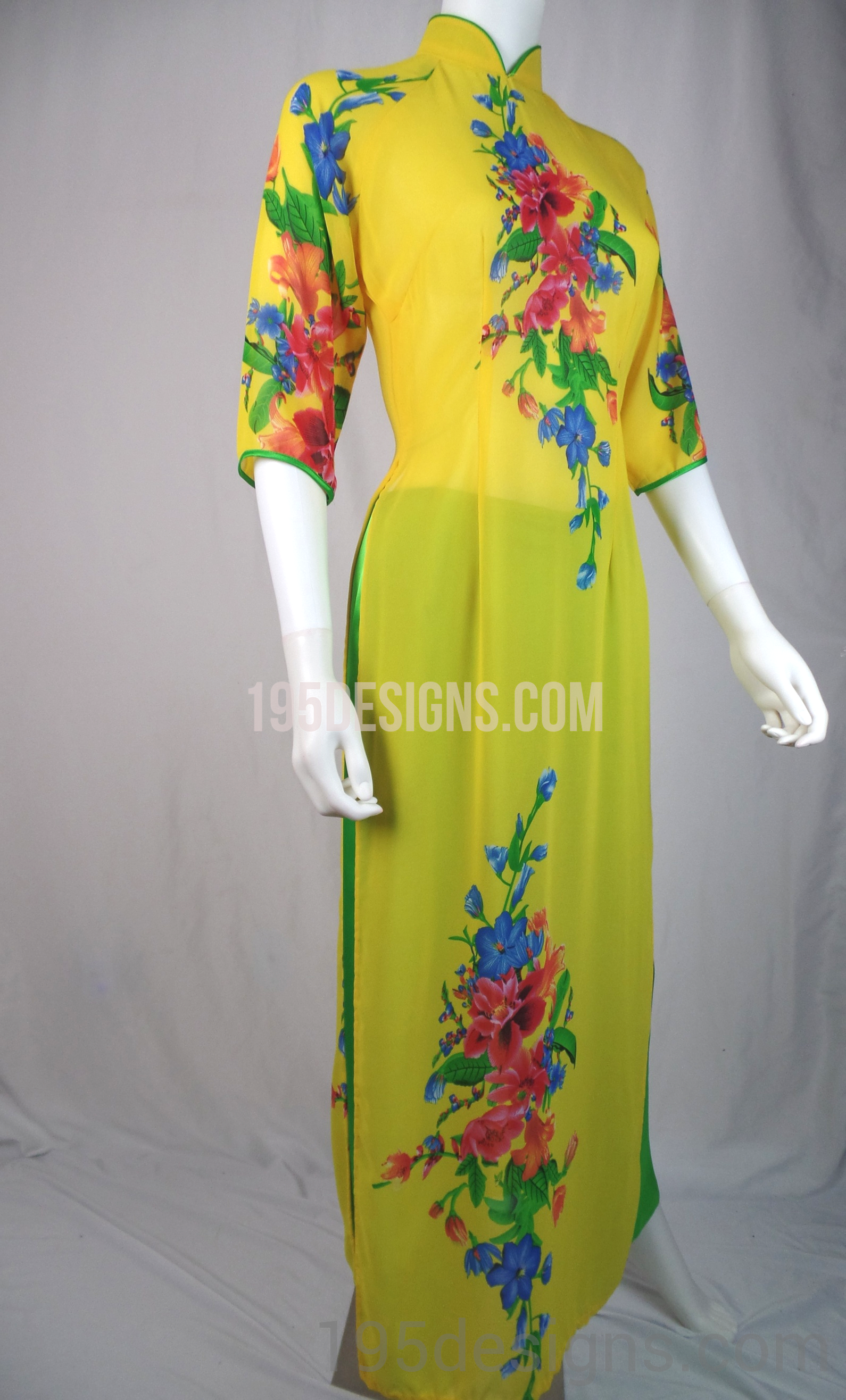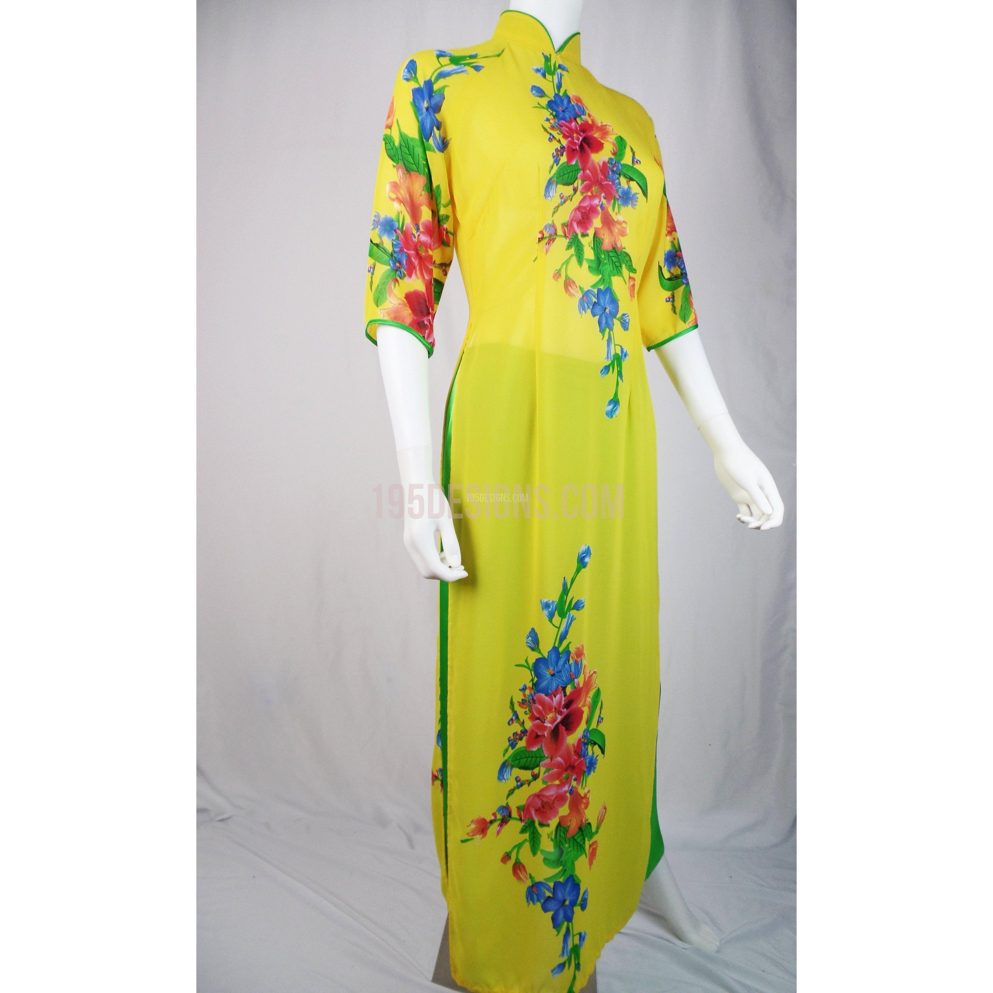 Yellow Ao Dai Red and Blue Spring Flower New Year Set | Hoa Tet